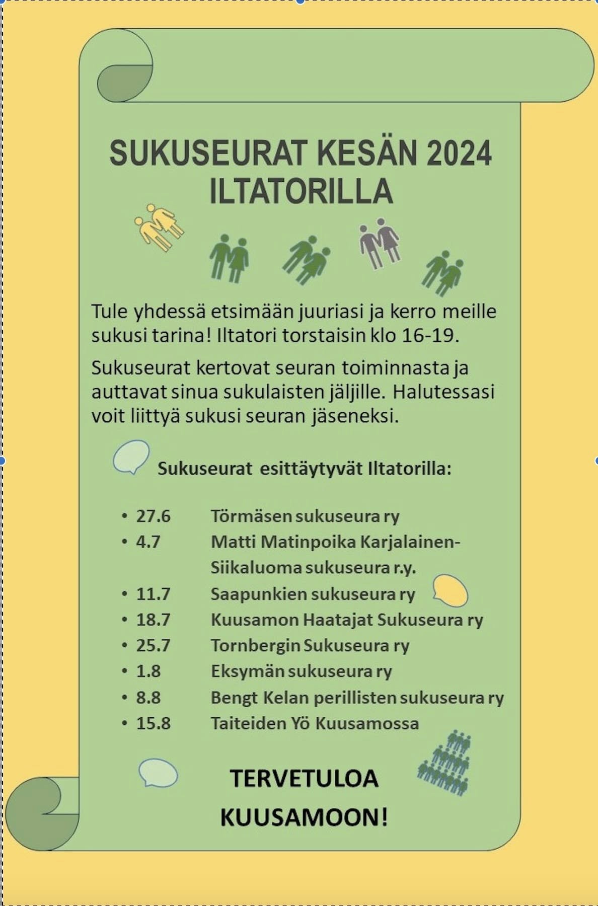 Sukuseuran iltatori -tapahtuma kesä 2024